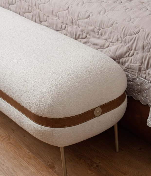 Assim como a música blues, o banco e o puff Blues buscam trazer uma sensação de aconchego e harmonia, tornando qualquer espaço mais convidativo. São revestidos com espuma, garantindo conforto em seu uso, o detalhe em recouro acrescenta uma textura luxuosa, enquanto os pés metálicos laqueados garantem um toque de modernidade.