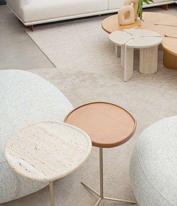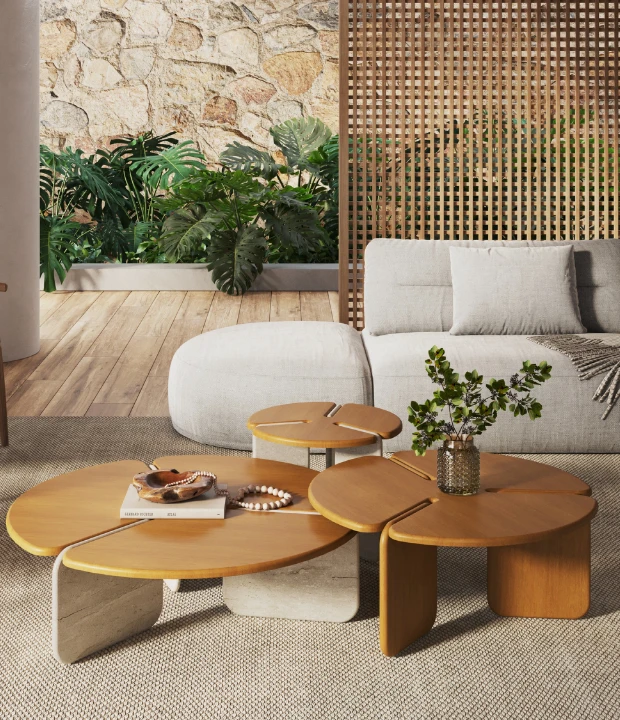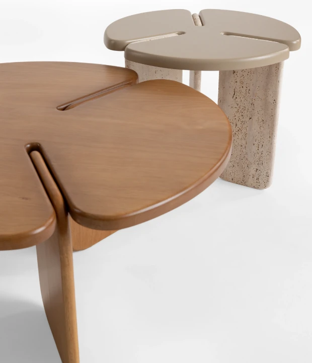 A mesa de centro Régia se destaca pela sua versatilidade, apresentando opções de tampo em madeira maciça e MDF laqueado, os pés podem ser confeccionados em pedra ou madeira. Com um design robusto e sofisticado, esta peça está disponível em três tamanhos distintos, oferecendo uma adaptação perfeita para diversos ambientes. Além disso, a possibilidade de uso conjunto das mesas proporciona uma flexibilidade adicional na composição, garantindo um toque distinto e elegante à decoração.