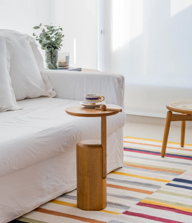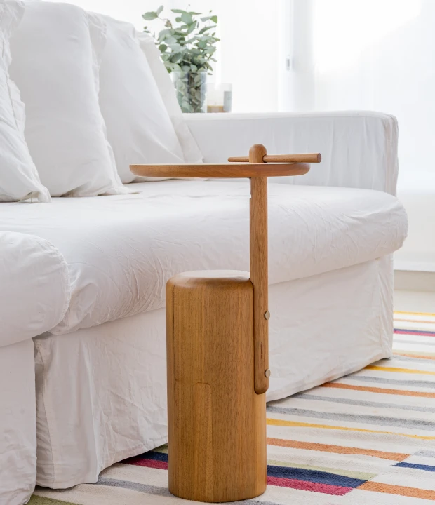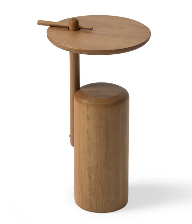 A mesa lateral Flepa valoriza a marcenaria com um design que equilibra simplicidade e sofisticação. Produzida em madeira maciça ou MDF, com opções de acabamento laqueado ou texturizado no tampo e na base. Destaca-se pela pequena trava de madeira, inspirada na "lasca" que se aloja nos dedos de quem trabalha com a madeira bruta, transformando um elemento rústico em detalhe estético e funcional.