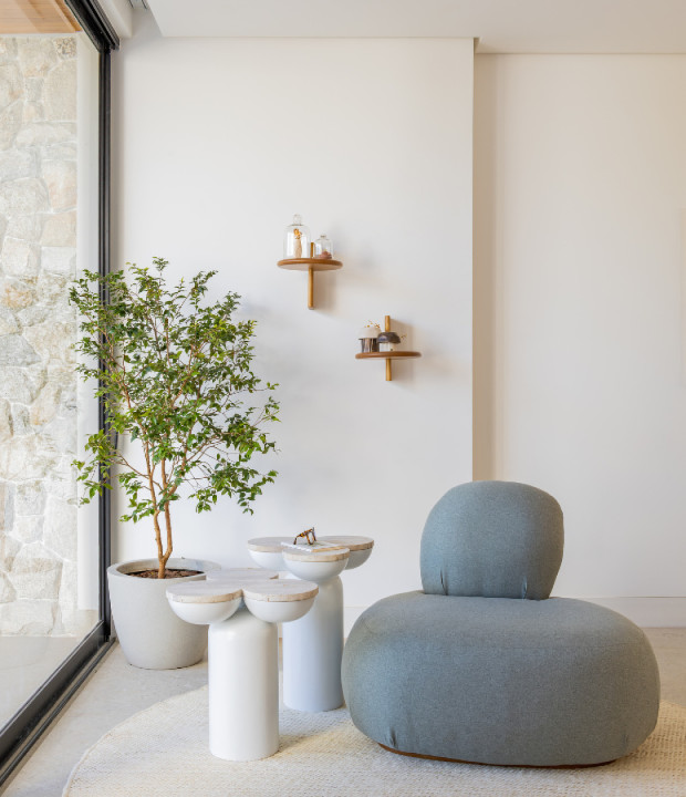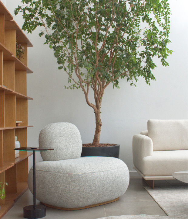 A poltrona Nuvem tem como principal conceito o conforto. Seu formato orgânico proporciona um design arrojado, acentuando as curvas e formas.